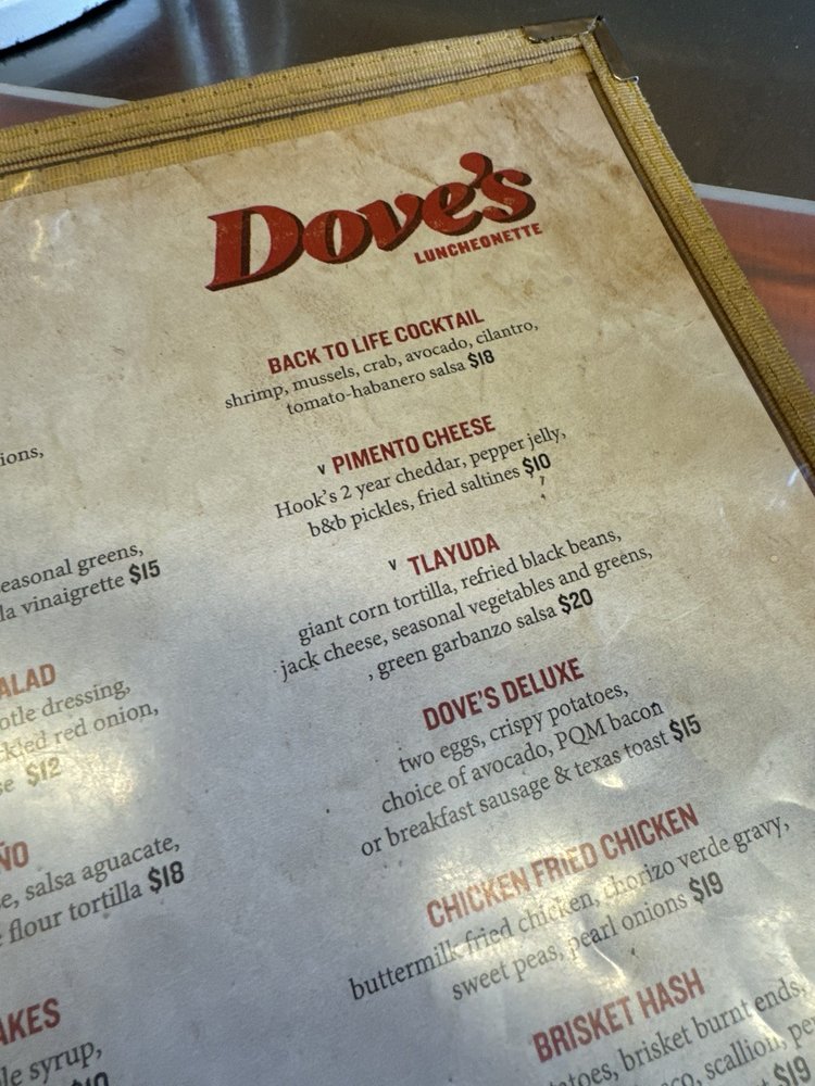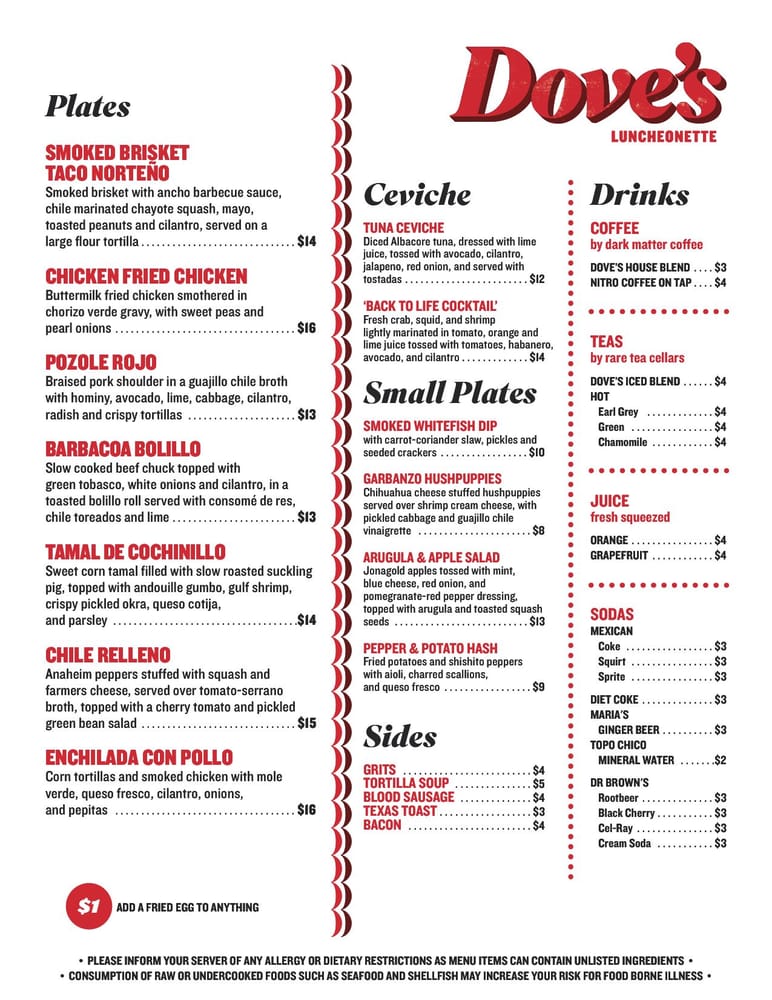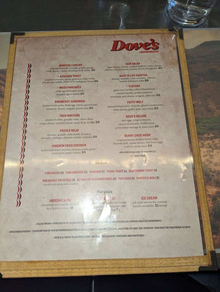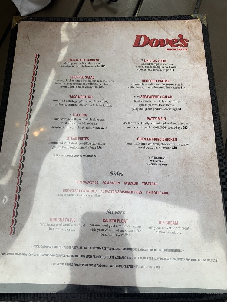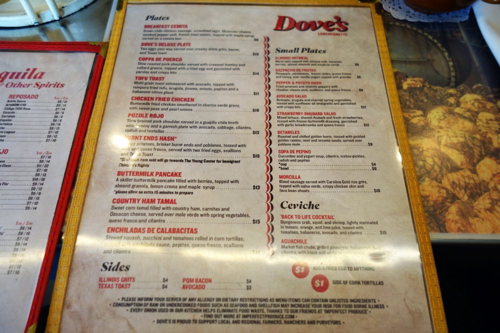 Dove's Luncheonette Menu